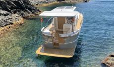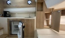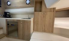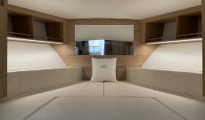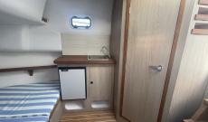As with all Norfeu models, the boat can be personalised to the maximum, especially the interior, where the customer can choose the layout, however we have prepared a layout for two people comfortably, with a large bed, space for wardrobes and a large wc with an interior shower, thus making a comfortable holiday stay, however as mentioned above we can adapt it for more capacity if the customer suggests it.