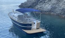 We have prioritised mobility and ample exterior space in all areas for 8/10 people on board, with a solarium for 4 people and a large cockpit aft for eating, fishing or simply relaxing.