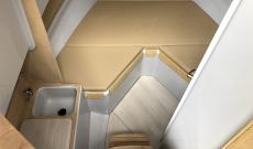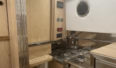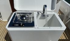 La bañera de popa consta de bancos modulares, que pueden ser abiertos por debajo dando una sensación de amplitud, con módulo cerrado para guardar cosas o sin bancos para los dedicados a la pesca y tener un gran espacio de bañera libre.