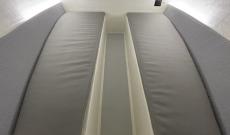 Gran solárium en proa para varias personas, con gran espacio interior para guardar los colchones, utensilios de pesca, juguetes náuticos ……