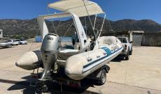 Pneumatique de 5,5 m avec moteur de 90 ch, coussins solarium neufs et révision du moteur récemment effectuée.